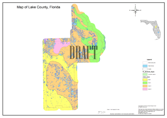 Click here, or on the map thumbnail at left to view a larger, draft version of a sinkhole map for Lake County. |