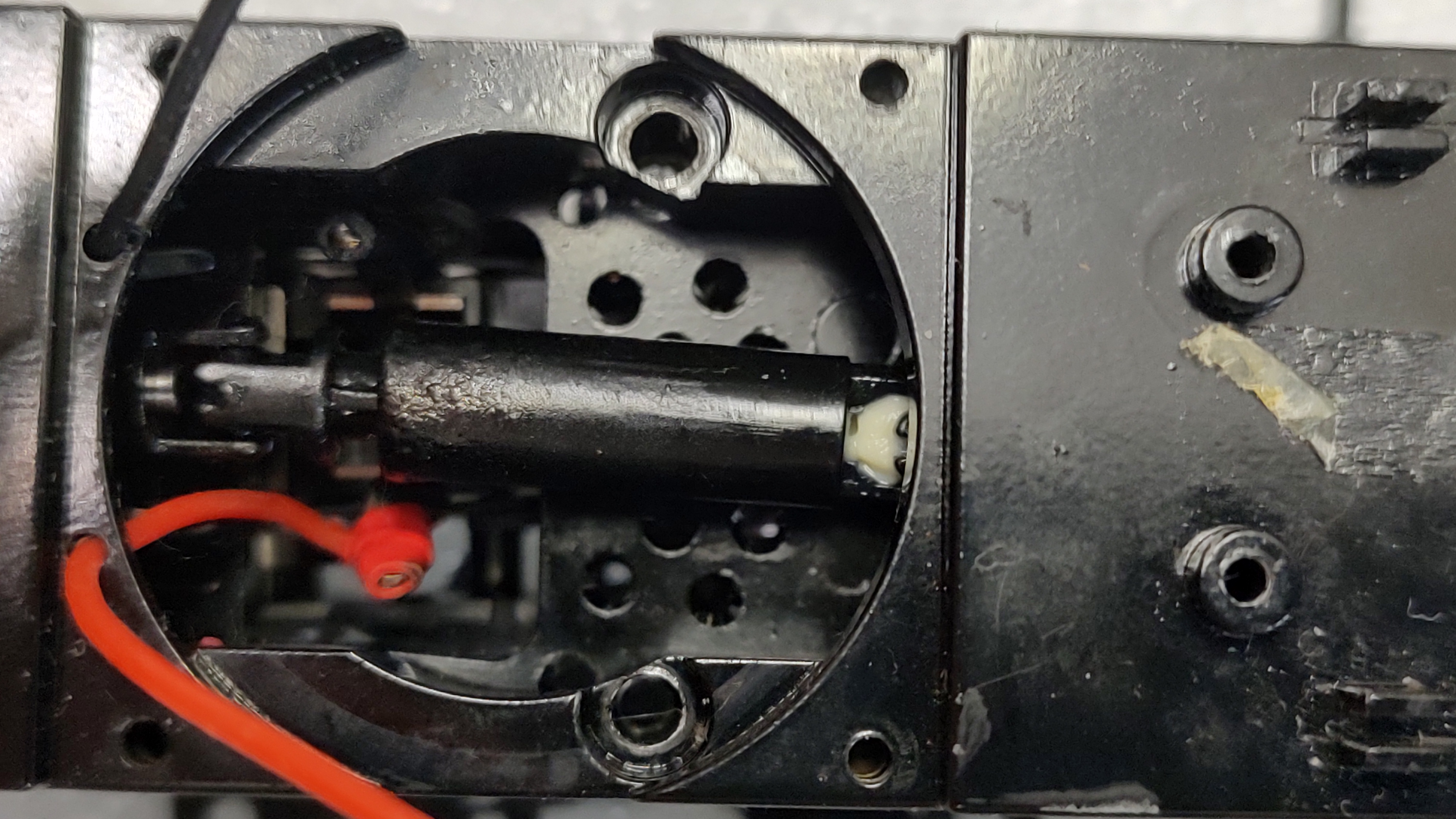 I purchased this locomotive on eBay in December for $62, with the addition of a Proto 2000 S1, Pennsylvania Railroad #9100; Proto 2000 part number 21362. The S1 ran and sounded great, right out of the box, but the E8/9, not so lucky. The DCC Sound functionality for the E8/9 worked fine, so I had some confidence in achieving a running locomotive, after a little work. In disassembling the locomotive to perform a thorough tune-up, I found the motor would not even turn by manually spinning the flywheels. I applied some light, plastic-safe clock oil to the four worm gear bearing points and the two motor bearing points and then let it set for a day or two. When I next checked the motor, after come initial sluggishness, it started freely spinning. With the motor now spinning, I was able to easily clean the commutator. At that point, I bypassed the decoder, connecting the pickup leads directly to the motor. It ran great and spent an hour running in both directions on my test track.